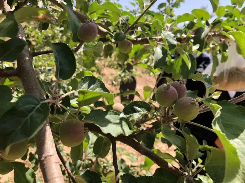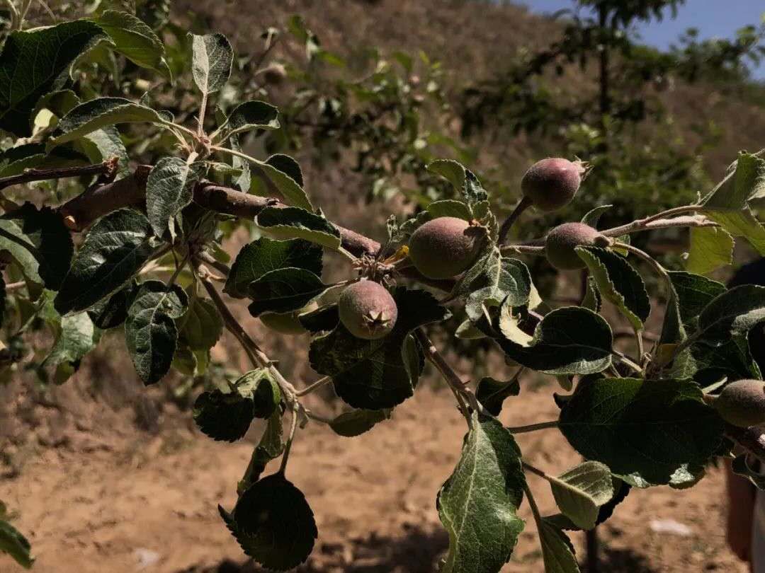 這是李建義在中國(guó)兵器工業(yè)集團(tuán)西安近代化學(xué)研究所和延安市安塞區(qū)、鎮(zhèn)、村多方幫扶下,種植的15畝蘋果園果樹首次掛果。