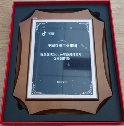 兵器工業(yè)集團(tuán)抖音號獲2020年政務(wù)抖音號優(yōu)秀創(chuàng)作者獎