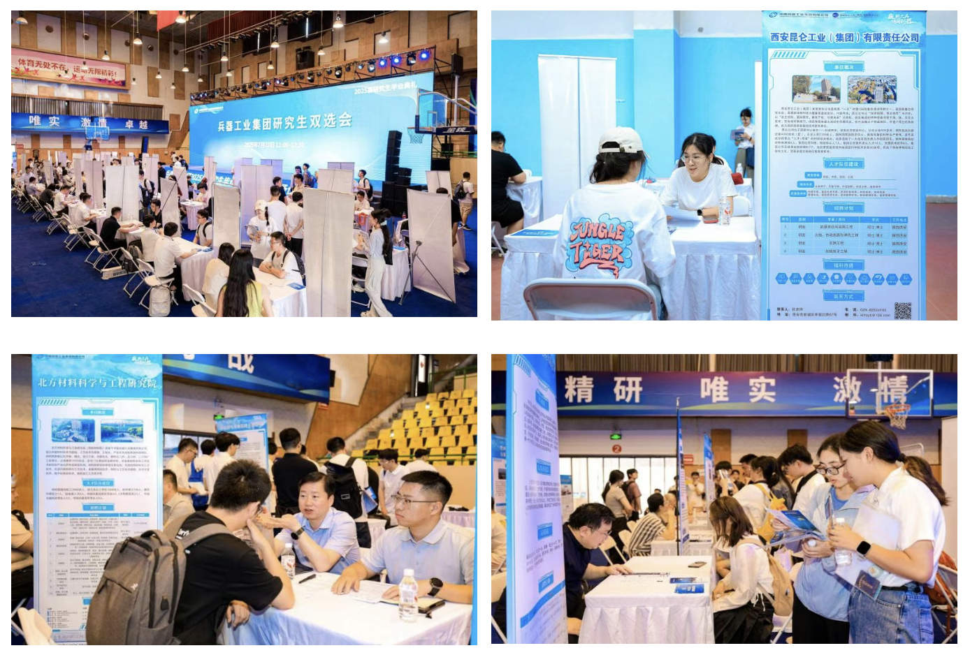 畢業(yè)生代表回顧成長(zhǎng)歷程,感謝培養(yǎng)平臺(tái)與導(dǎo)師指導(dǎo),誓言投身國(guó)防事業(yè)。導(dǎo)師代表肯定學(xué)生科研淬煉的“嚴(yán)謹(jǐn)”與“擔(dān)當(dāng)”,寄語(yǔ)傳承人民兵工精神,在強(qiáng)軍報(bào)國(guó)中實(shí)現(xiàn)價(jià)值。校友代表以科研經(jīng)歷詮釋兵工人使命,勉勵(lì)學(xué)弟學(xué)妹以裝備成果接力書(shū)寫(xiě)強(qiáng)軍報(bào)國(guó)答卷。全體師生共同唱響《強(qiáng)軍有我》,鏗鏘有力的歌聲回蕩在體育館內(nèi),既飽含著對(duì)青春理想的告白,更傳遞出投身國(guó)防事業(yè)的堅(jiān)定信念,為這場(chǎng)畢業(yè)盛典增添了厚重的使命底色。 典禮的莊重氛圍未散,兩場(chǎng)精準(zhǔn)對(duì)接國(guó)防需求的雙選會(huì)已在相鄰場(chǎng)館同步開(kāi)啟。60家集團(tuán)公司下屬單位的招聘人員與2025屆畢業(yè)生、在讀研究生及工程碩博士們圍坐洽談,圍繞崗位需求與項(xiàng)目方向,以簡(jiǎn)歷和科研成果為媒展開(kāi)深度對(duì)接。這場(chǎng)覆蓋多層次人才的就業(yè)服務(wù),精準(zhǔn)銜接科研人才儲(chǔ)備與國(guó)防需求,為兵器事業(yè)高質(zhì)量發(fā)展注入活力。