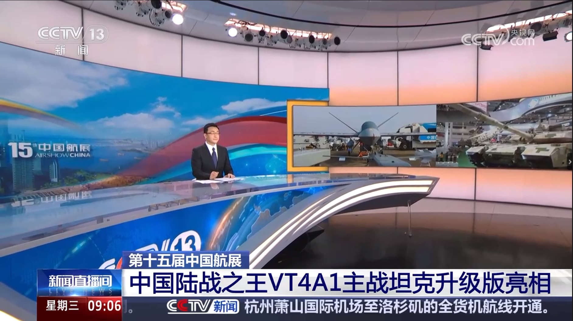 [新聞直播間]第十五屆中國航展 中國陸戰(zhàn)之王VT4A1主戰(zhàn)坦克升級版亮相